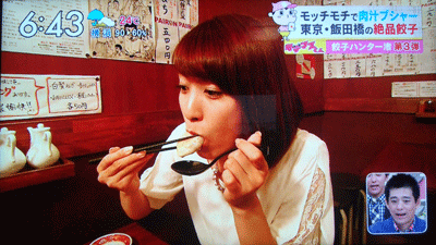 - 【佐藤渚アナの口から飛び散った餃子の秘密は、たっぷりの肉汁です!】